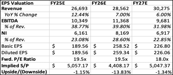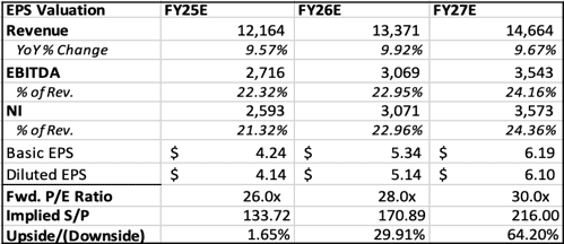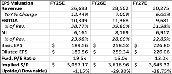 We project revenue growth decelerating to 7% in 2026 and 6% in 2027 as AI answer engines reduce traffic quality. Consensus expects 9% in 2026 ($29.1B) and 8% in 2027 ($31.5B). Current performance shows Q3 2025 revenue up 9.7% with room nights up 8.2% and gross bookings up 14% constant currency. This represents deceleration from 12.4% full-year growth in 2025, but if growth stays above 9% through the first half of 2026, our timing is wrong. We will critically watch the first 2-3 earnings releases of 2026. If revenue growth prints above 10% sustainably, the AI impact is either delayed or less severe than expected.