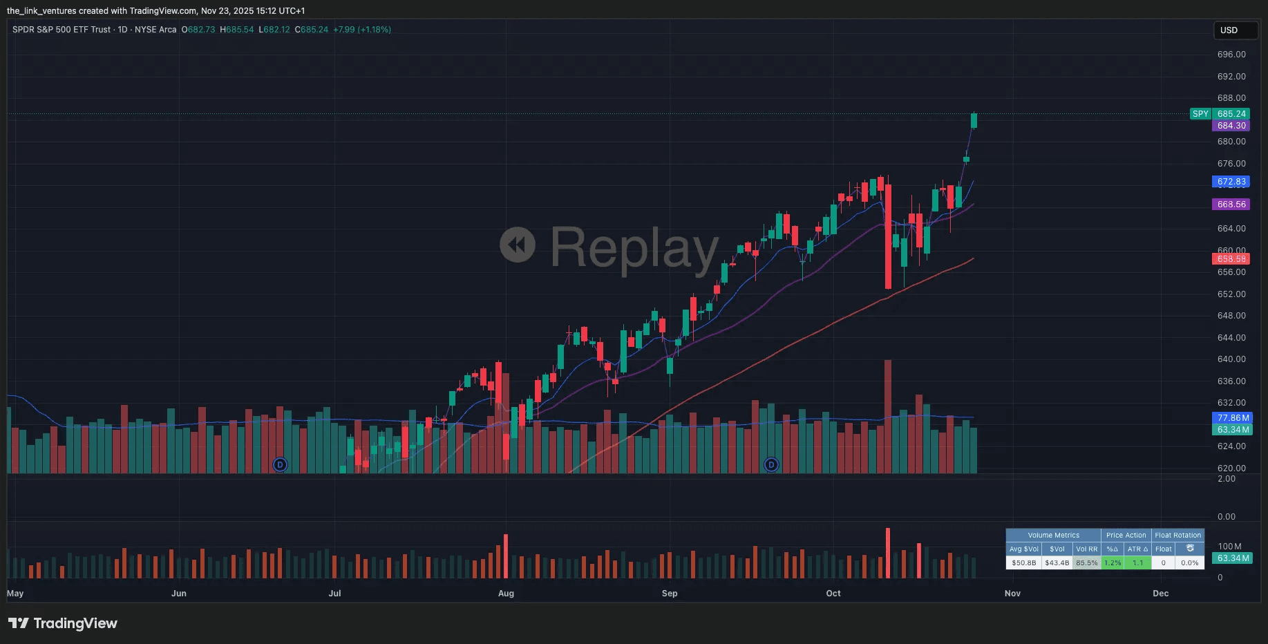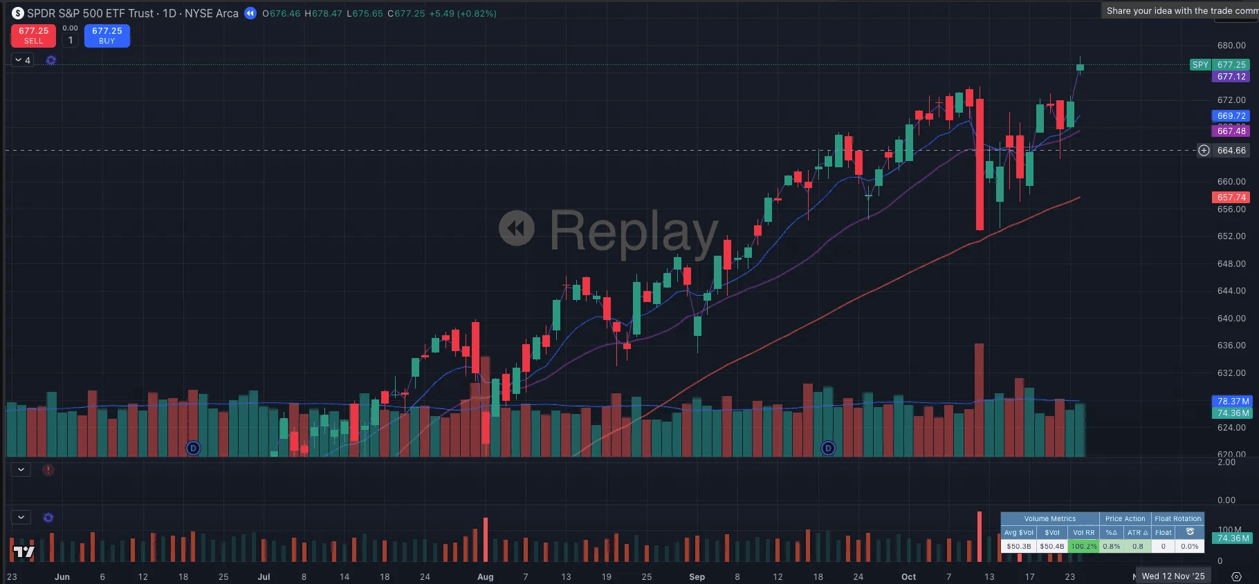 Meanwhile, looking at the overall market, we can see that SPY gapped into ATH on the Friday and was able to hold it during the day. This comes after a strong one-day sell-off into the daily moving average got no FT and we chopped higher again, as we typically have for months now.